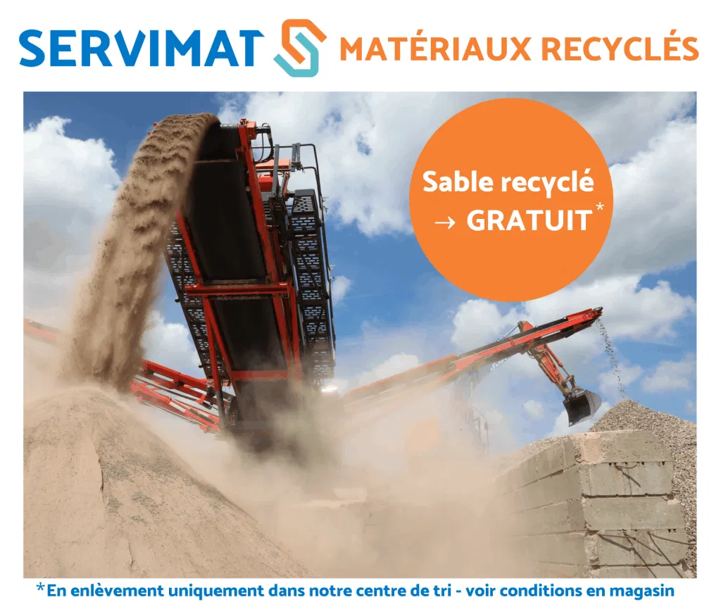Chez ServiMat, nous vous aidons à construire plus intelligemment et plus durablement. Pour vos travaux de remblayage ou d’égouttage, pensez au sable recyclé : une solution économique, locale et respectueuse de l’environnement.